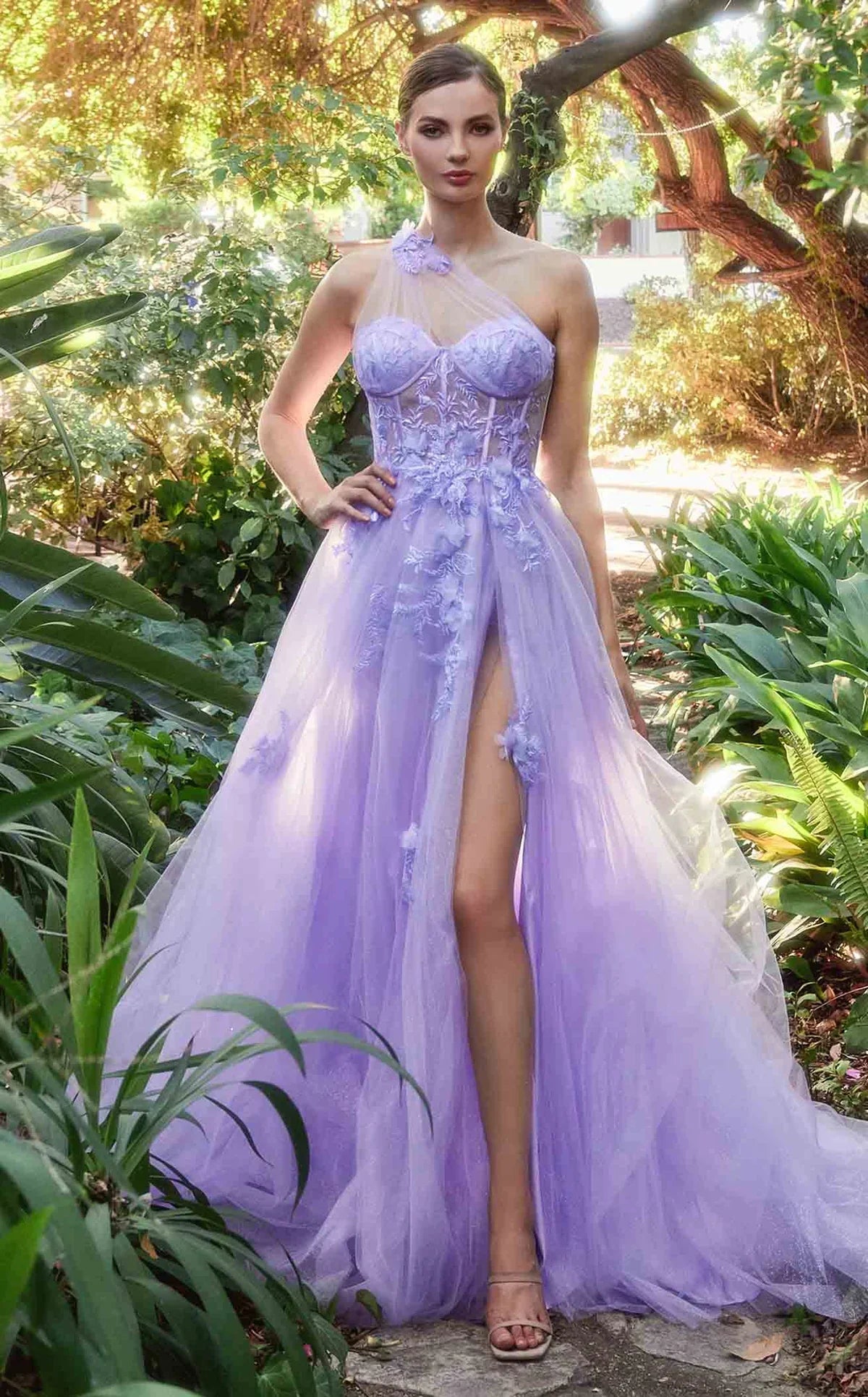 TIRANTE DE UN LADO DE TULD, ESTAMPADO DE FLORES, TIPO CORSET, FALDA DE TULD, ABERTURA EN P.