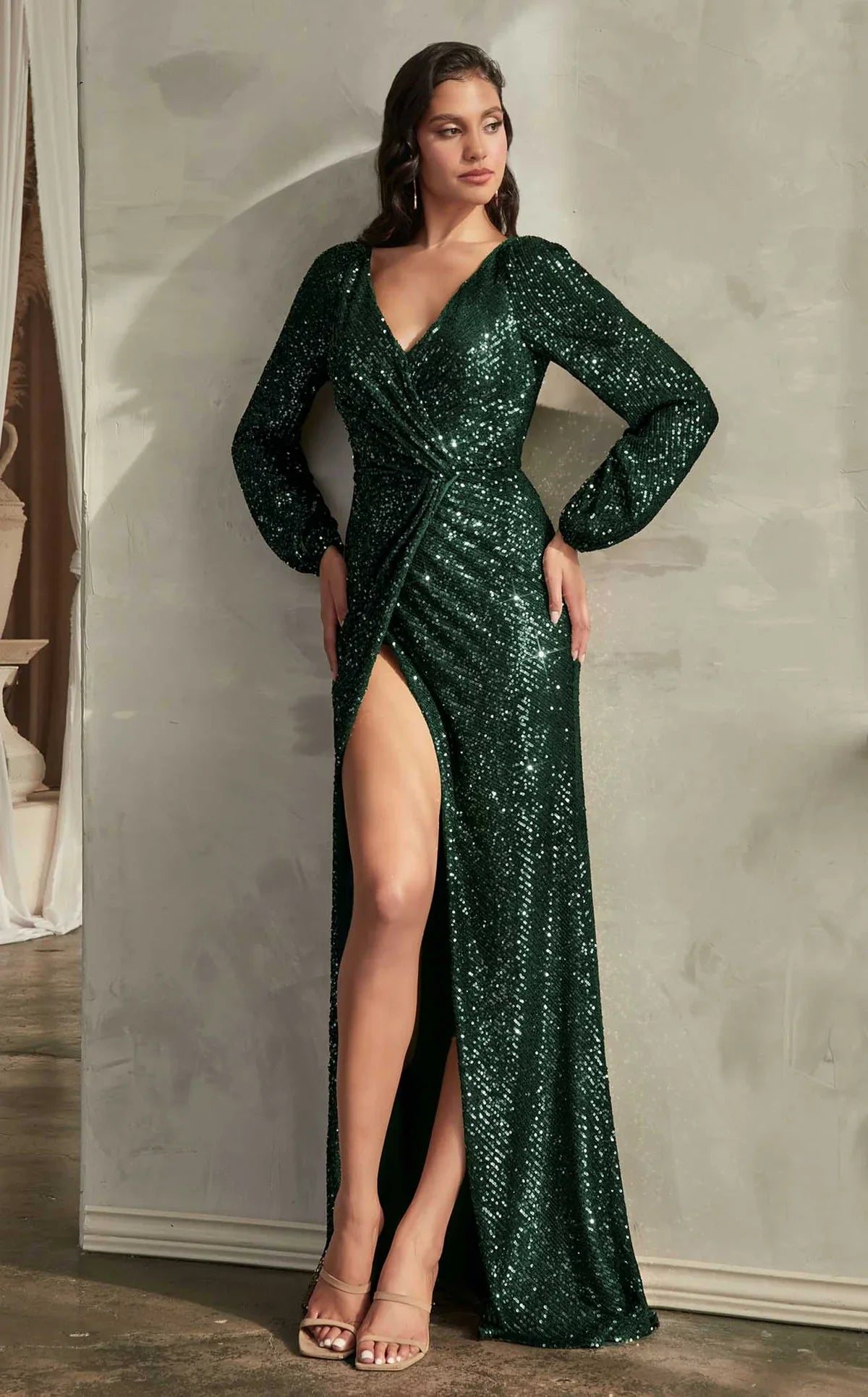 MANGA LARGA, ESCOTE V, ESTAMPADO DE LENTEJUELA