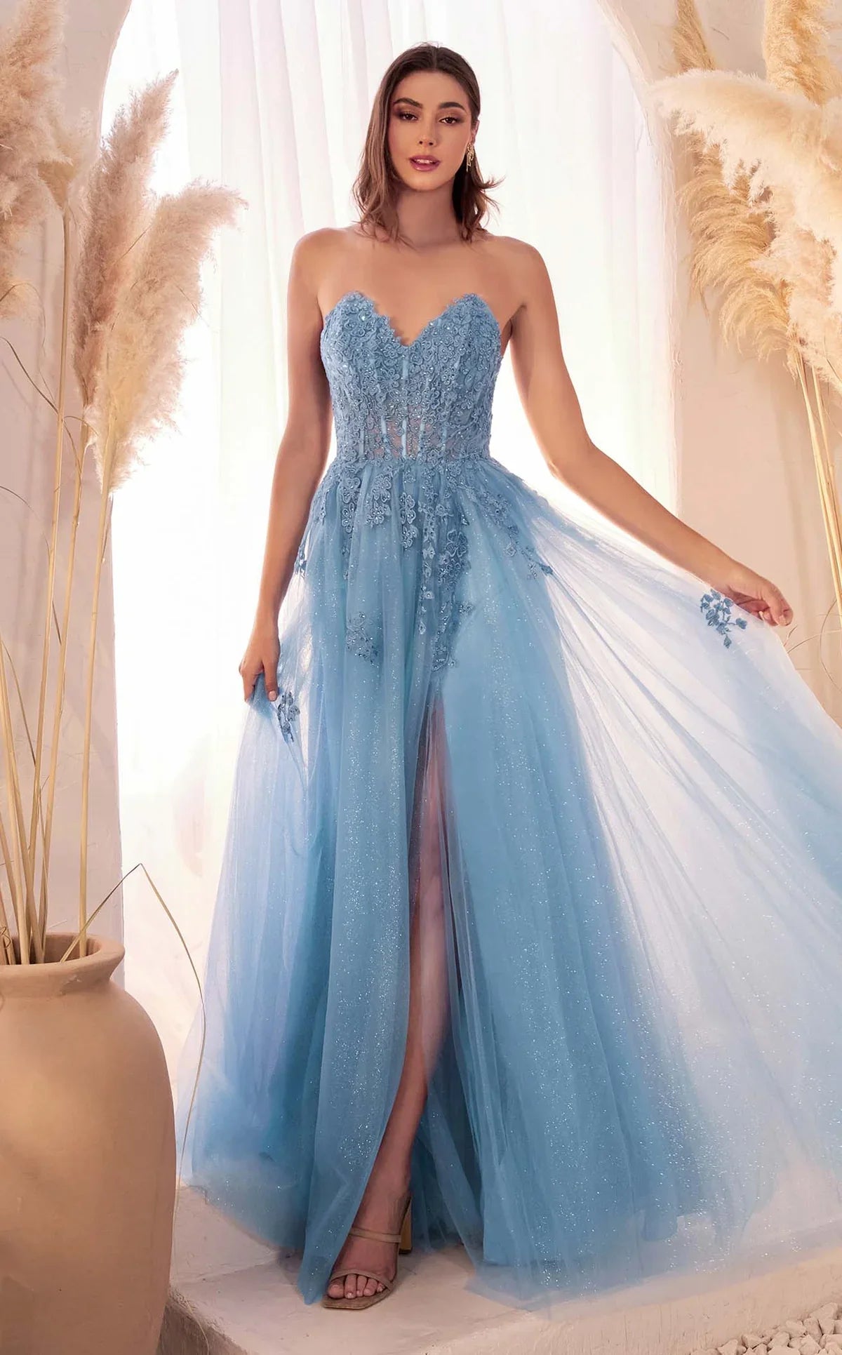 STRAPLES, ESCOTE V, TIPO CORSET, ESTAMPADO DE FLORES, ABERTURA EN P.