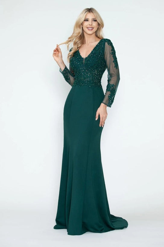 MANGA LARGA, ESTAMPADO DE FLORES EN BUSTO, ESCOTE V