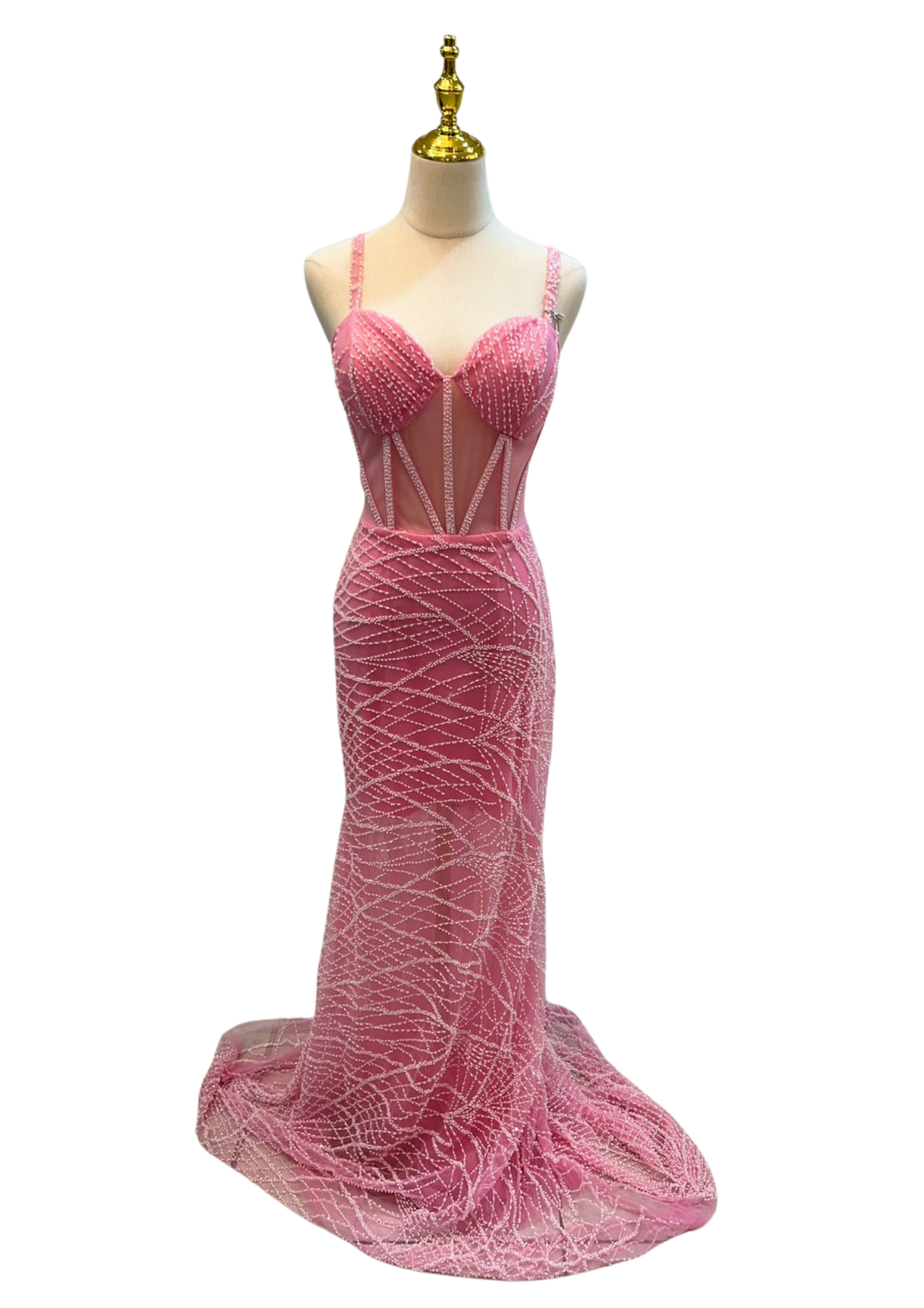 TIRANTES, ESCOTE CORAZON, TIPO CORSET, ESTAMPADO DE PERLAS
