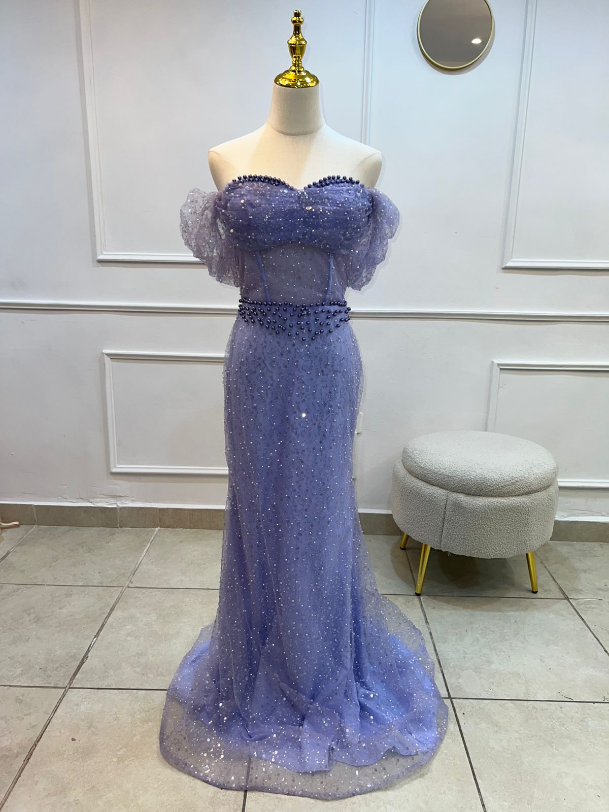 MANGA CAIDA, ESCOTE CORAZON, ESTAMPADO DE PERLAS