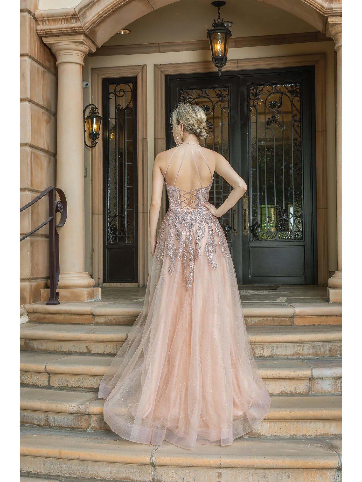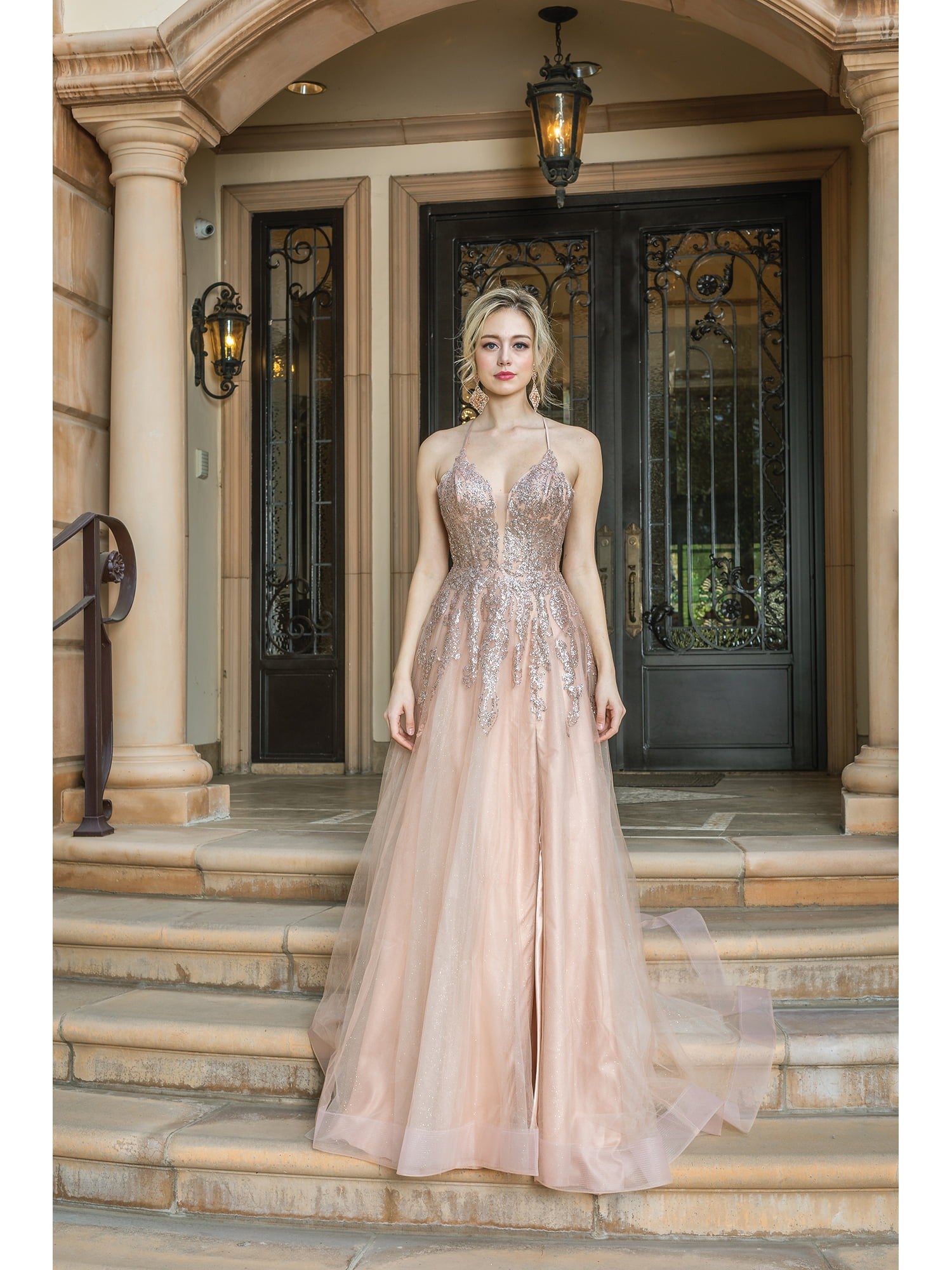 TIRANTES TIPO CORSET ESTAMPADO DE BRILLANTINA, FALDA DE TUL, ABERT EN PIERNA.