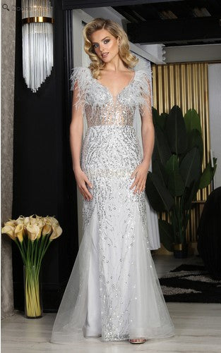 PLUMAS EN TIRANTES ESCOTE V, ESTAMPADO DE LENTEJUELAS