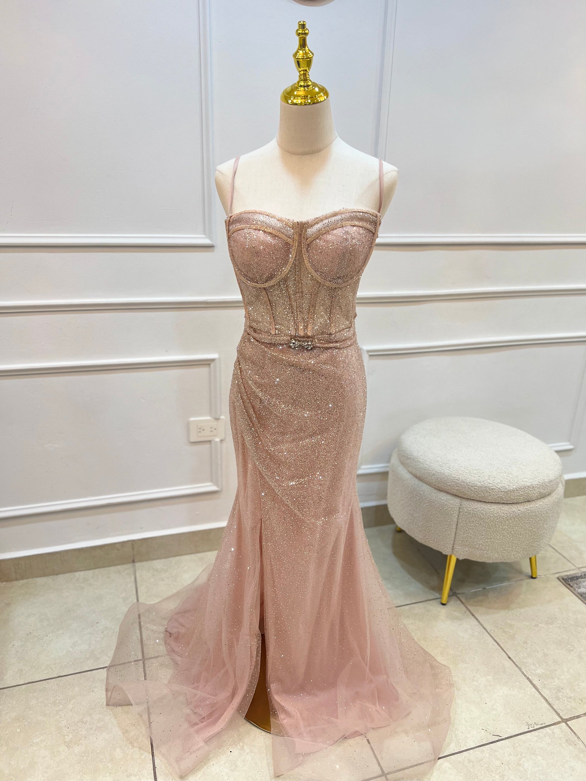 TIRANTES, ESCOTE CORAZON, TIPO CORSET, ABERTURA EN PIERNA
