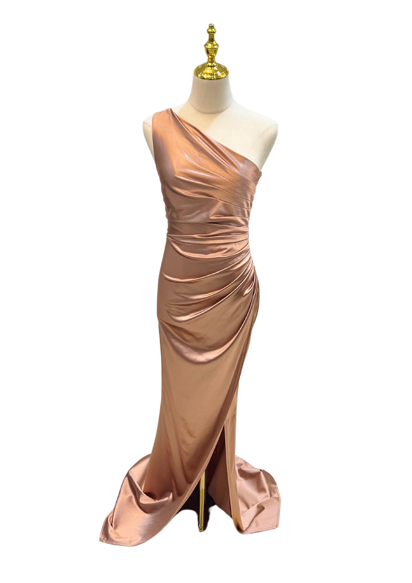 UNA MANGA, PLISADO EN BUSTO, ABERTURA EN P, SATIN